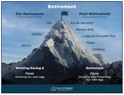 Peak Retirement Planning, Inc. ofrece un proceso denominado Plan de Retiro Simplificado para ayudar a las familias a alcanzar sus metas y abordar sus inquietudes, elaborar estrategias sobre el mejor camino hacia sus objetivos de jubilación y luego construir una relación permanente de por vida. Durante este proceso, Peak Retirement Planning, Inc. crea un plan de impuestos utilizando su software program de impuestos avanzado y revisa su lista de más de 50 estrategias de ahorro de impuestos para permitirle pagar menos al Tío Sam.